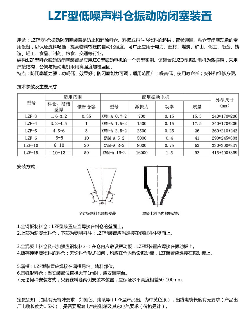 1.全鋼板制料倉(cāng):LZF型裝置應(yīng)當(dāng)焊接在料倉(cāng)的壁面上。